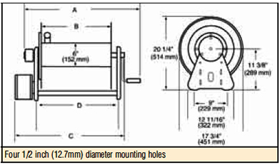* "D" dimension for hand crank direct drive reels is 29" (737mm) or 38" (966mm)