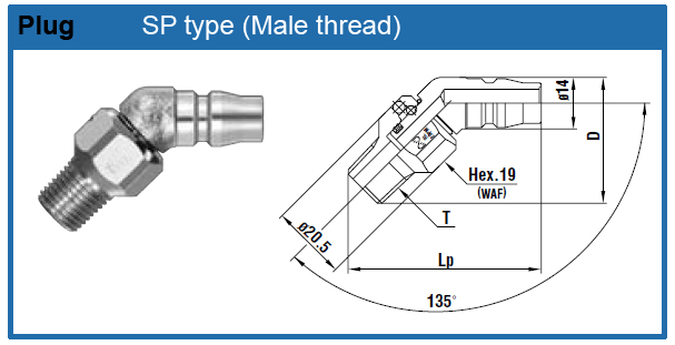 | For male Thread connection (Product code SP - 20PFF) |