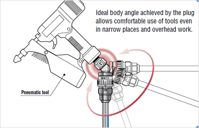 * Rotary plug for hose connection to pneumatic tools and pneumatic devices.